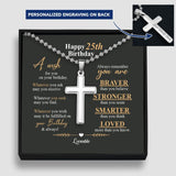A Wish for You on Your Birthday is a thoughtful STAINLESS STEEL CROSS NECKLACE Birthday gift idea for him, designed to convey heartfelt wishes in a sophisticated style. This elegant piece is perfect for marking his special day, providing not just a gift, but a memorable token that he can cherish. It's an ideal way to express your affection and best wishes, enhancing his jewelry collection with a meaningful and stylish addition.
