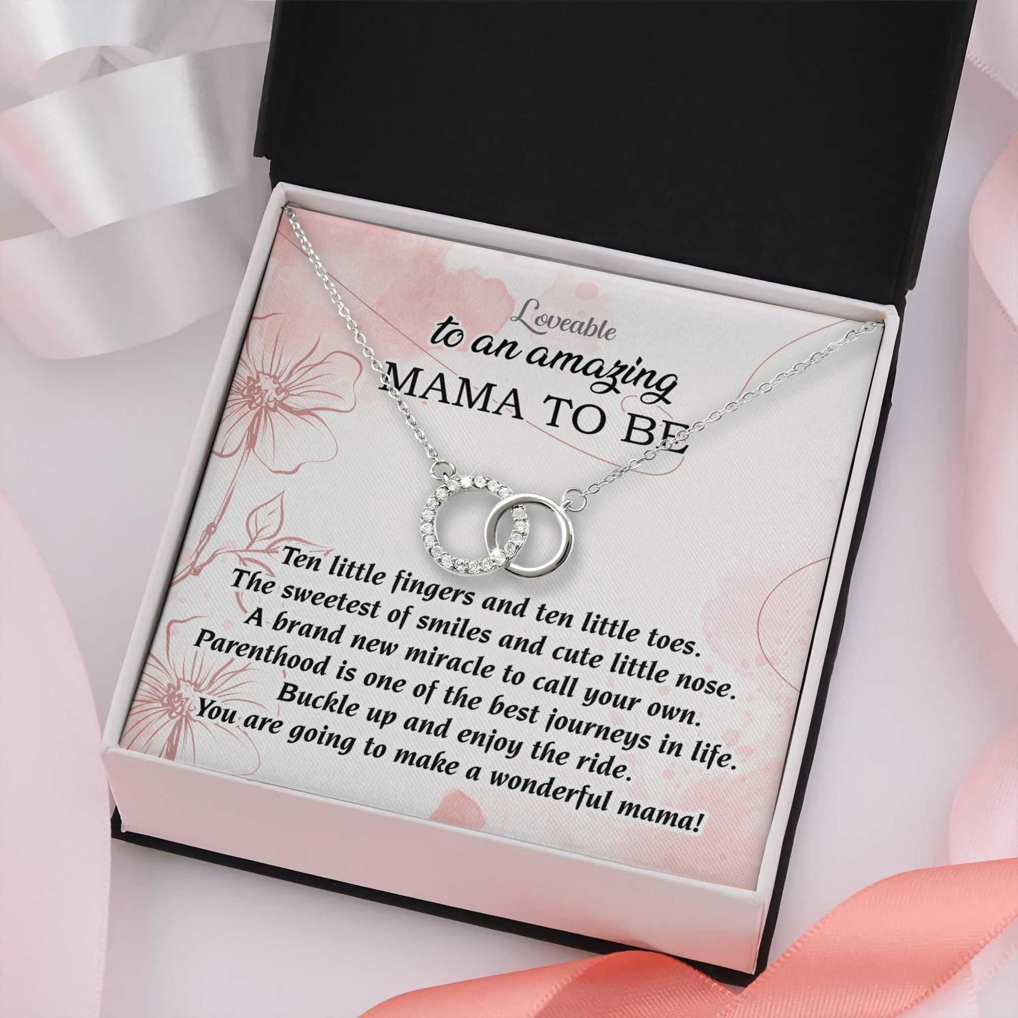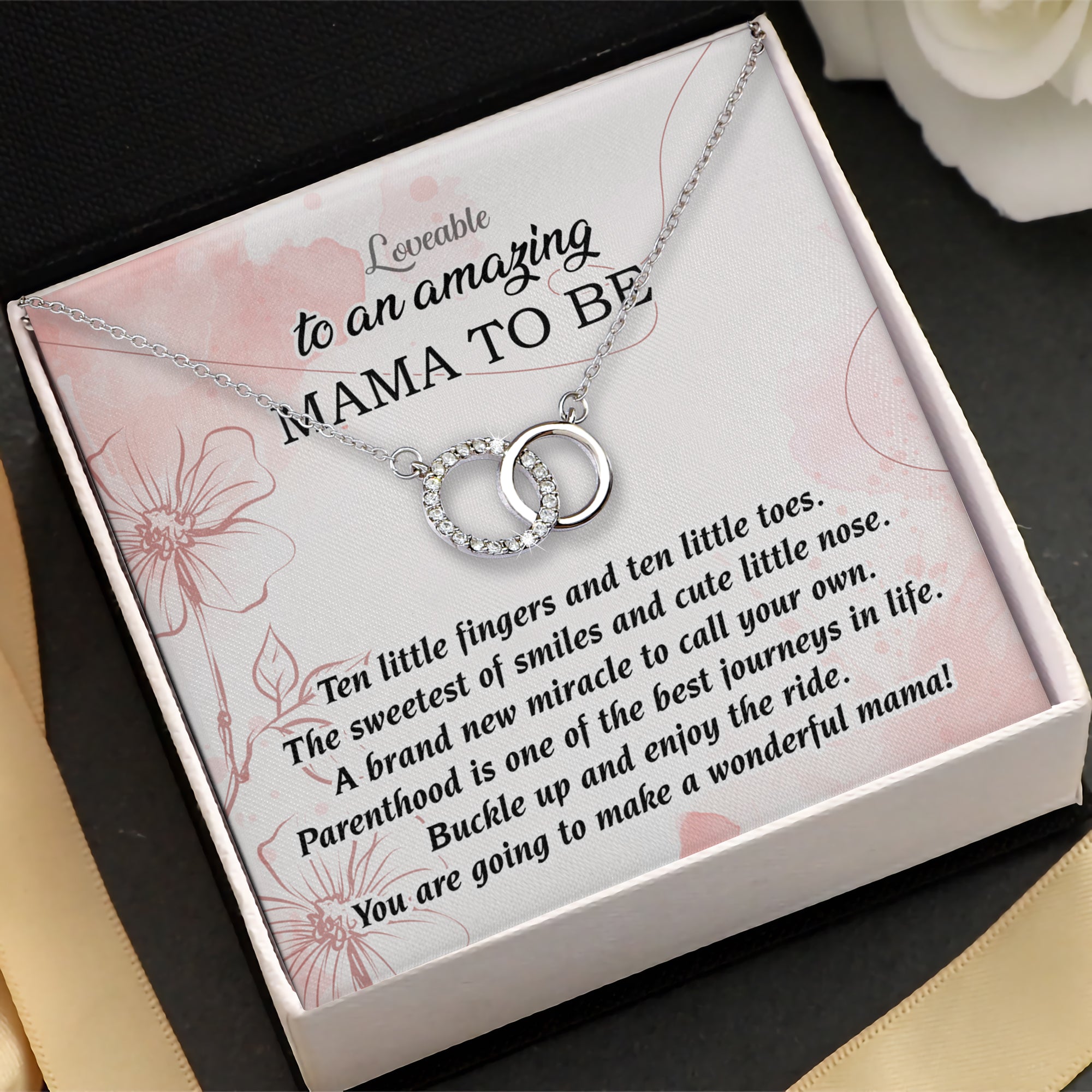 This necklace is a beautiful gift for new moms, symbolizing the strong bond with her baby. It's made with white gold and has a sparkling crystal at the center. Perfect for any special moment for a mom-to-be.