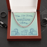 The "Best Wishes on Your Birthday - Cuban Link Chain" is a stylish and memorable birthday gift that adds a touch of elegance and significance to the celebration. It symbolizes your special bond with the recipient, making it a significant present beyond aesthetics. This gift is a way to convey your heartfelt wishes and appreciation, making their birthday even more special.