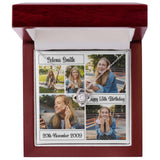 The "Custom Photo Necklace Collage Birthday Gifts For Her" is a deeply personal and touching birthday gift, ideal for any special woman in your life as a daughter, sister, mom, aunt, grandma, wife, or girlfriend. This necklace uniquely holds cherished memories close to the heart, making every moment unforgettable. It's the perfect way to show love and appreciation, ensuring that those precious shared memories are always within reach.