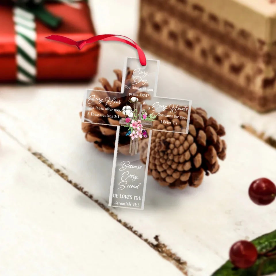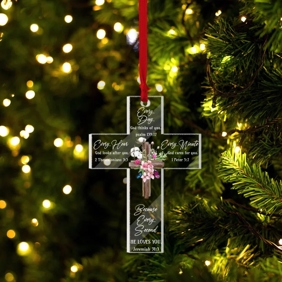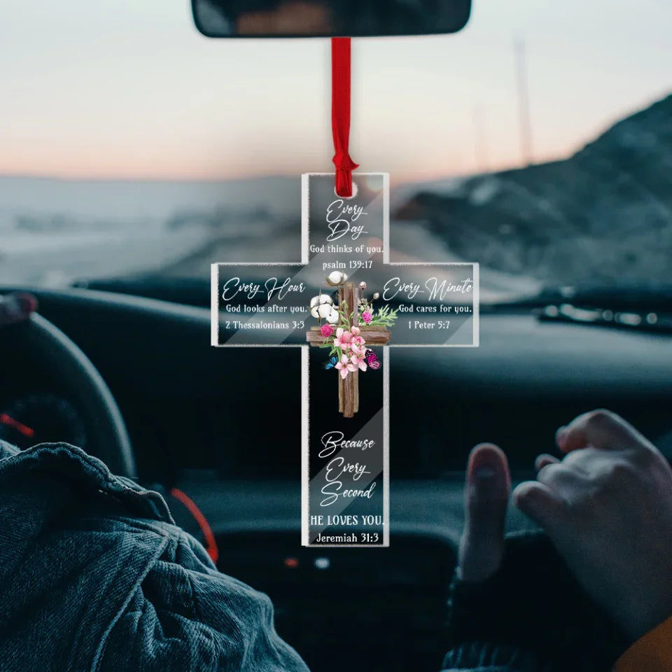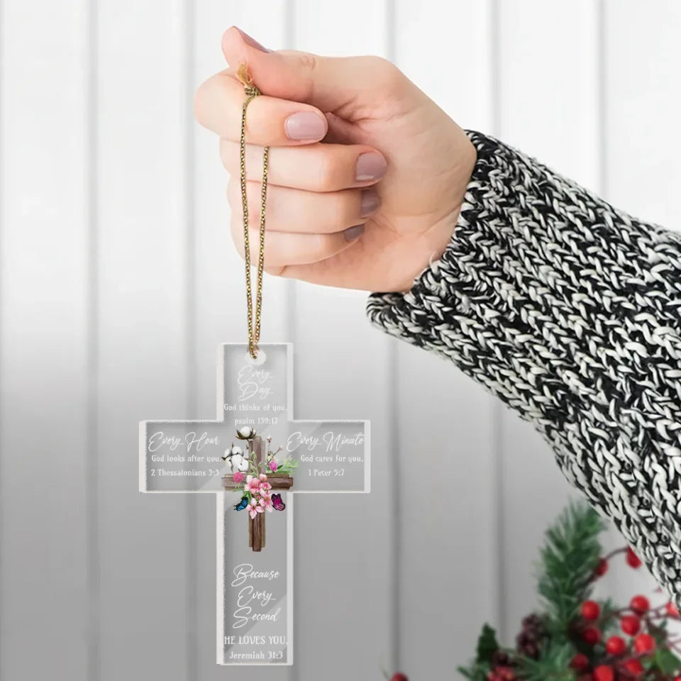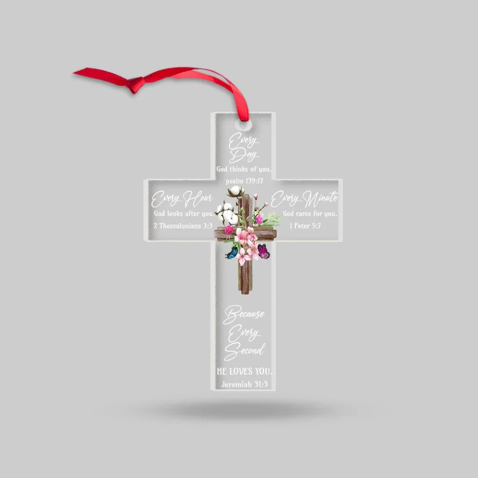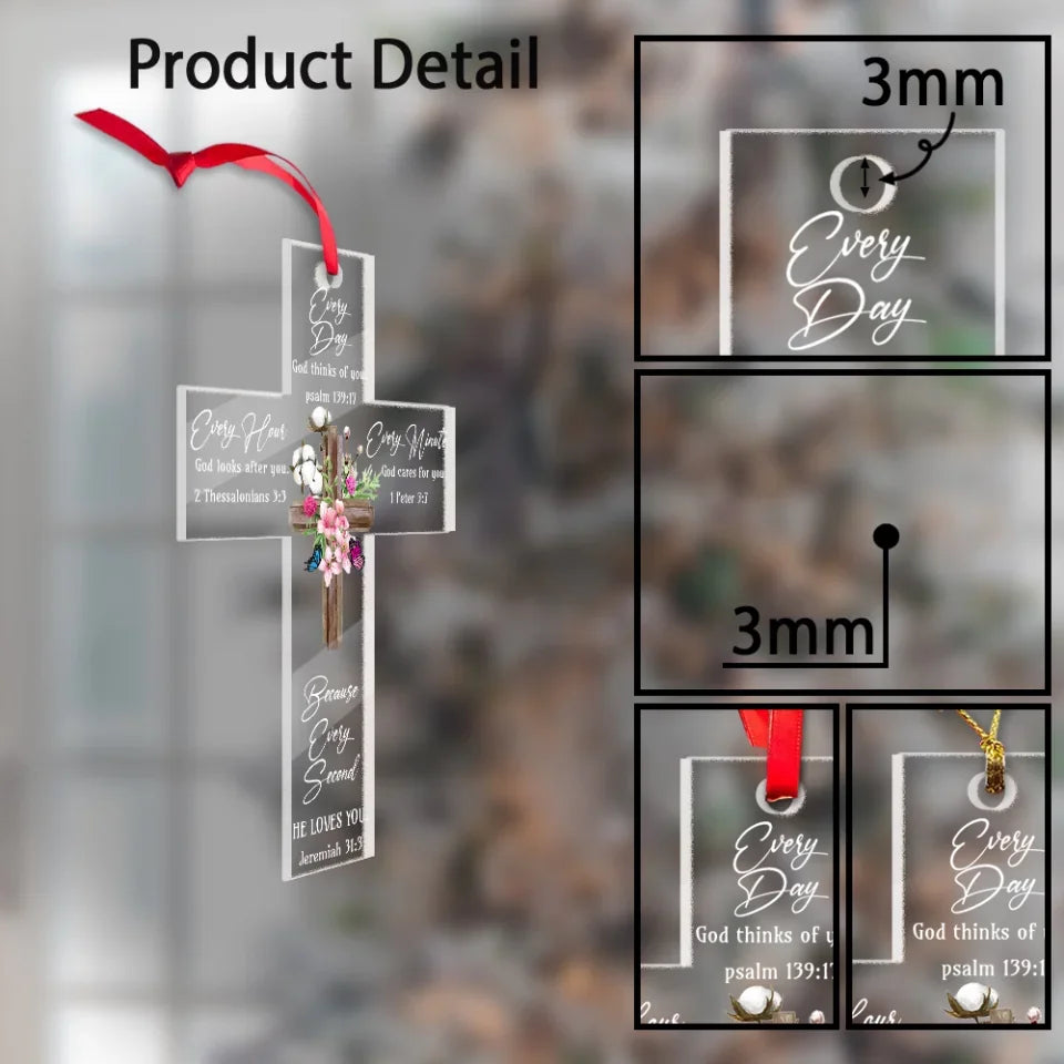 Everyday God Thinks of You - Bible Verse Cross-Shaped Acrylic Ornament is a beautiful reminder of faith and inspiration. This elegant cross ornament serves as a thoughtful Christian gift, perfect for family, friends, and coworkers. Whether used as car hanging decor or home hanging decor, it adds a touch of spirituality to any space, making it a cherished keepsake for believers.