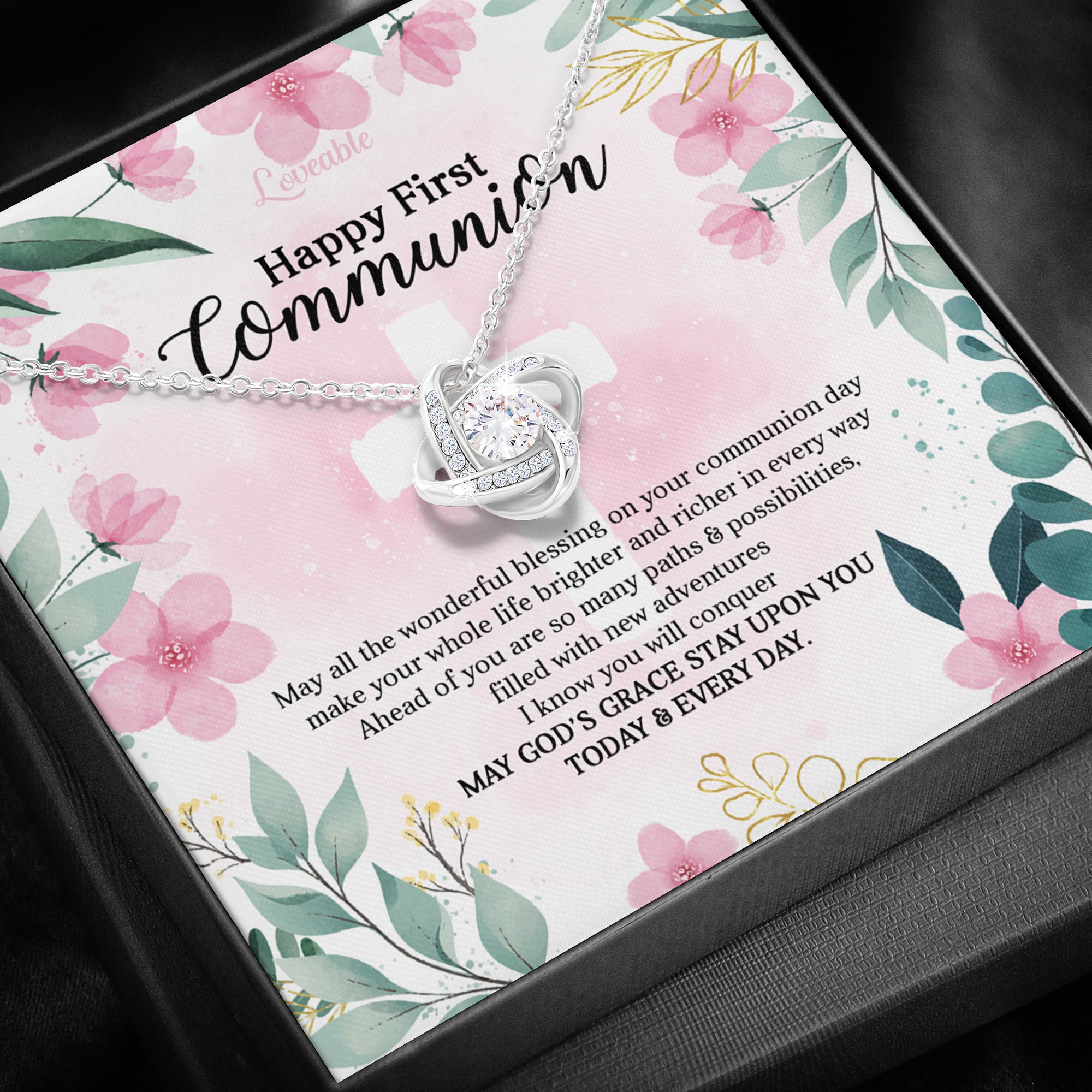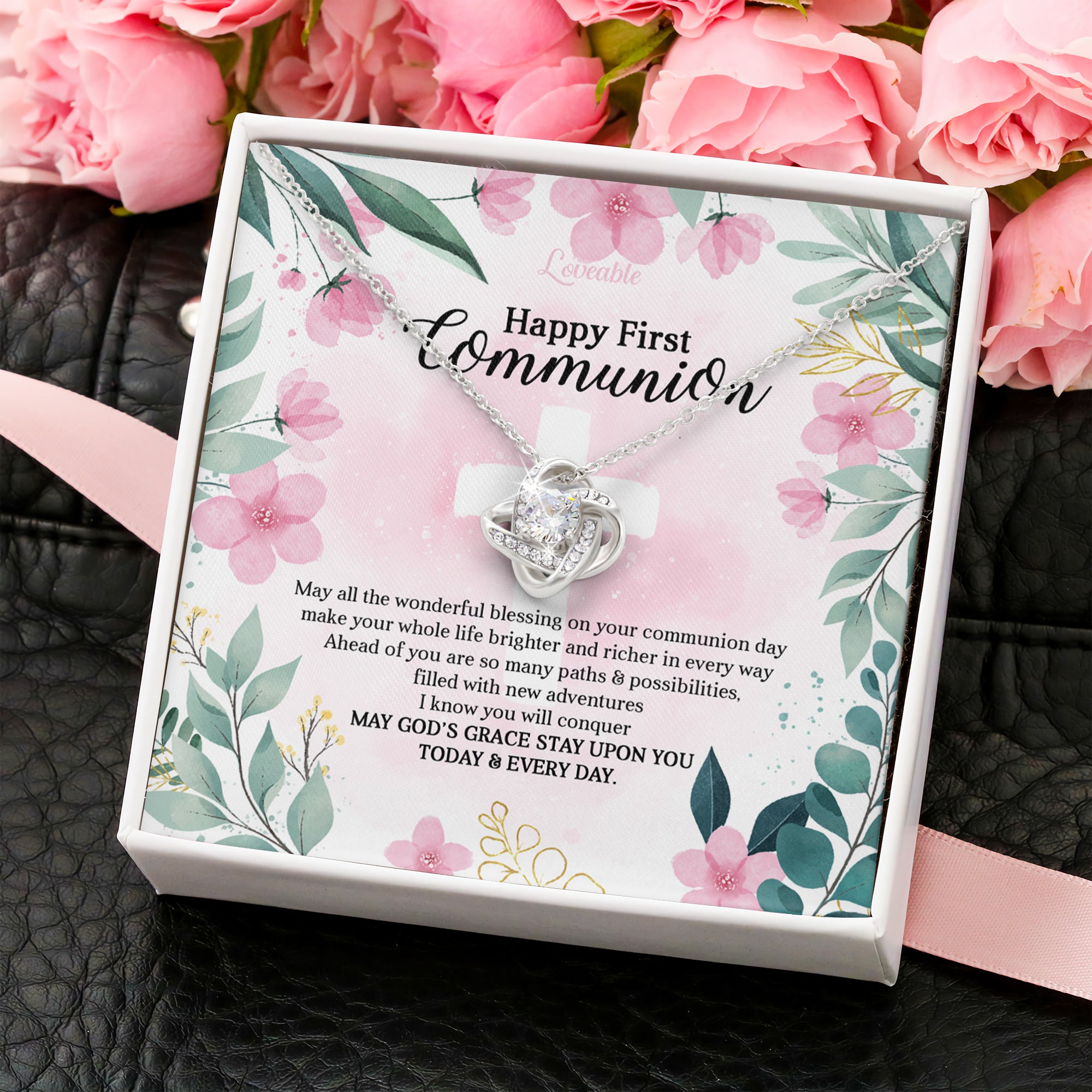 The "Happy First Communion White Gold Necklace" is an exquisite gift for her, perfect for celebrating a significant anniversary or milestone. This necklace symbolizes purity and joy, making it an ideal way to commemorate a special moment. It's a thoughtful and elegant present that will be cherished for years, serving as a timeless reminder of a cherished celebration or life event.