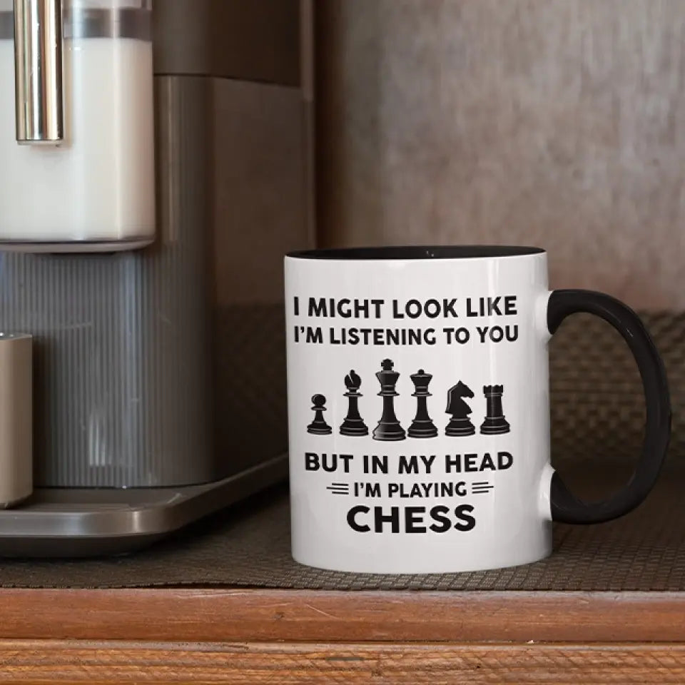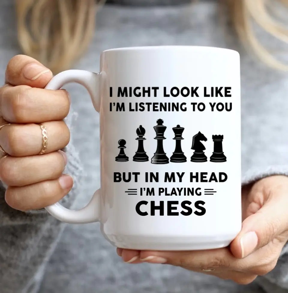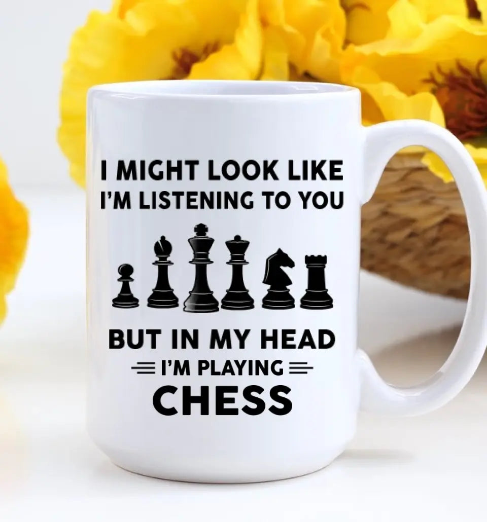 The "I Might Look Like I'm Listening To You" white mug is a humorous and thoughtful gift for chess lovers. It offers a playful way to acknowledge their passion for the game, even during everyday moments like enjoying a drink. This mug serves as a fun reminder of their love for chess, making it an excellent gift for your mom, grandma, or any chess enthusiast who appreciates a good laugh with their beverage.