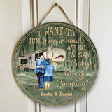 The "I Want to Hold Your Hand at 80 and Camping" personalized wooden sign is a heartfelt camping gift for couples. It celebrates enduring love and shared passions, making it a beautiful decorative piece for those who cherish outdoor adventures together. This custom-made sign adds a personal touch to any home or campsite, symbolizing a lifetime of companionship and outdoor exploration.