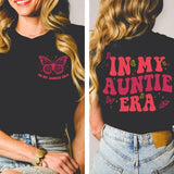 The "In My Auntie Era" T-shirt is a playful and stylish gift for any aunt. This two-sided shirt celebrates her role with a fun and loving message, making it a perfect present to show appreciation and affection. It's a versatile addition to her wardrobe that she can wear proudly, expressing her joy and pride in her auntie duties.