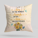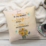 Elevate the comfort and style of your living space with a throw pillow that encapsulates timeless wisdom and affection. This personalized canvas pillow perfectly expresses your love and the joy of living in the moment. It is a beautiful reminder to laugh often and love unconditionally, making it an ideal anniversary gift for her.