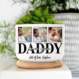 Enhance the warmth of your home with the "Love You Daddy/Mommy" Personalized Photo Plant Pot. Crafted from premium ceramic and accompanied by a bamboo tray, this pot is more than just a gift; it's a heartfelt token. Personalize it with cherished photos, printed using advanced UV technology to ensure lasting vibrancy. Ideal for mom or dad, it's a beautiful blend of sentiment and style.