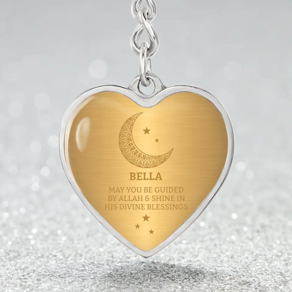 The "May You Be Guided By Allah Custom Keychain Necklace Gift For Eid" is a thoughtful gift for Eid that radiates both elegance and spiritual sentiment. Ideal as a gift for her, this personalized keychain and necklace set serves as a meaningful reminder of divine blessings and guidance. It’s a beautiful way to celebrate Eid with a touch of luxury and heartfelt personalization.