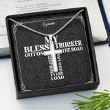 My Bless Trucker Out on the Road Personalized Stainless Cross Necklace