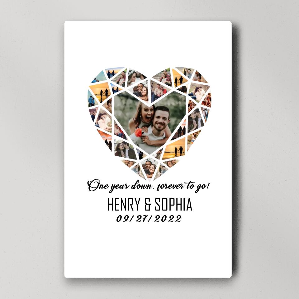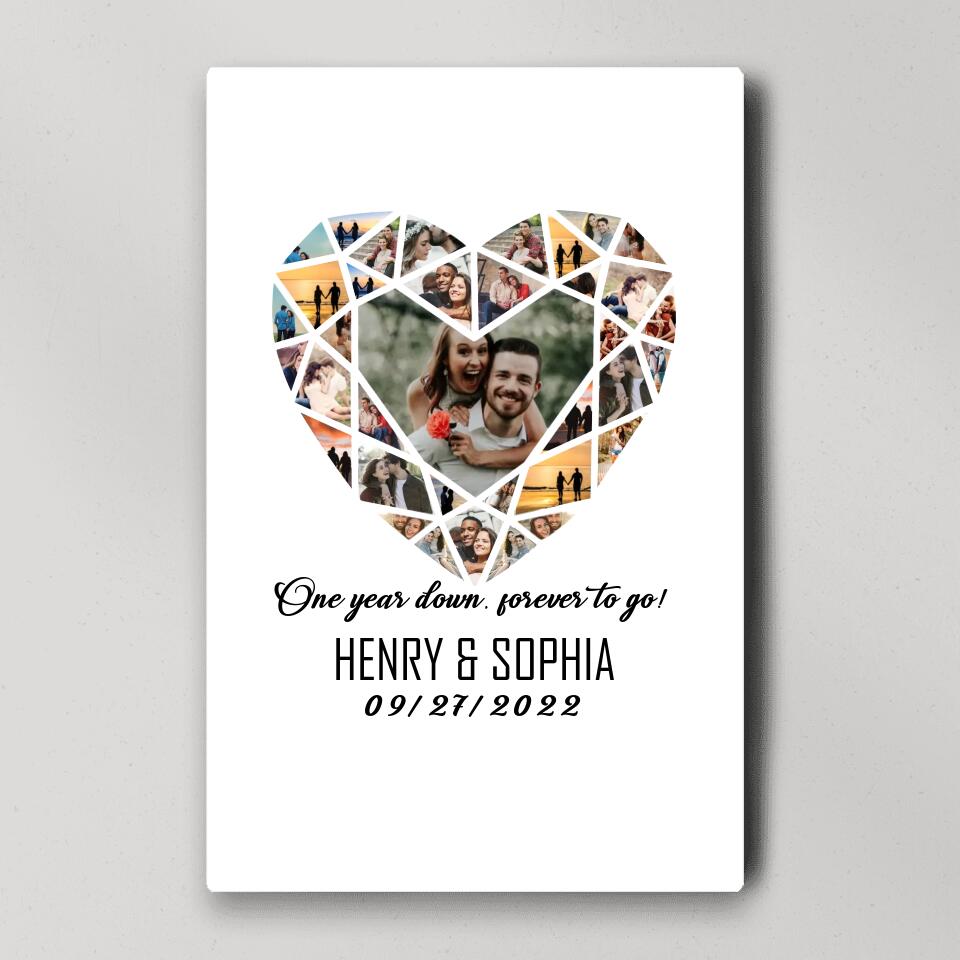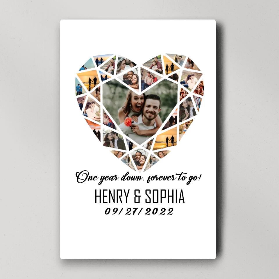 The "One Year Down Forever To Go Photo Collage Custom Canvas Poster Anniversary Gift For Couples" is a heartfelt celebration of your first year together, making it the perfect gift for couples. This beautiful piece serves as a meaningful anniversary gift that honors your journey, capturing the essence of your love and the memories you’ve created in this special time.