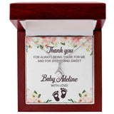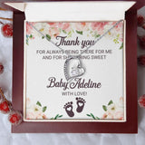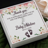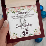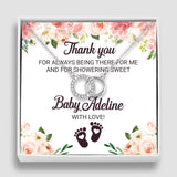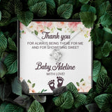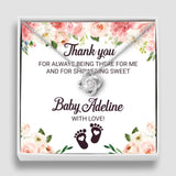 The "Thank You For Always Being There For Me" personalized love knot necklace is an exceptional baby shower hostess thank-you gift, symbolizing infinite gratitude and appreciation. This personalized necklace features a timeless design, making it a beautiful and enduring token of thanks for someone special who made your event memorable.