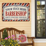 This personalized barbershop metal sign combines vibrant full-color print quality with a touch of personalization, making it an ideal gift for hairdressers, hairstylists, or barbershop owners. It's perfect for commemorating special events such as business anniversaries, shop openings, or as a unique holiday or birthday gift. Crafted from durable metal and suitable for indoor use or shaded outdoor areas, this sign features options for custom names or messages at no extra cost, ensuring a meaningful and long-lasting impression. The high-quality metal and meticulous craftsmanship underline its premium nature, making it not just a decorative item but a statement of appreciation and professional pride.
