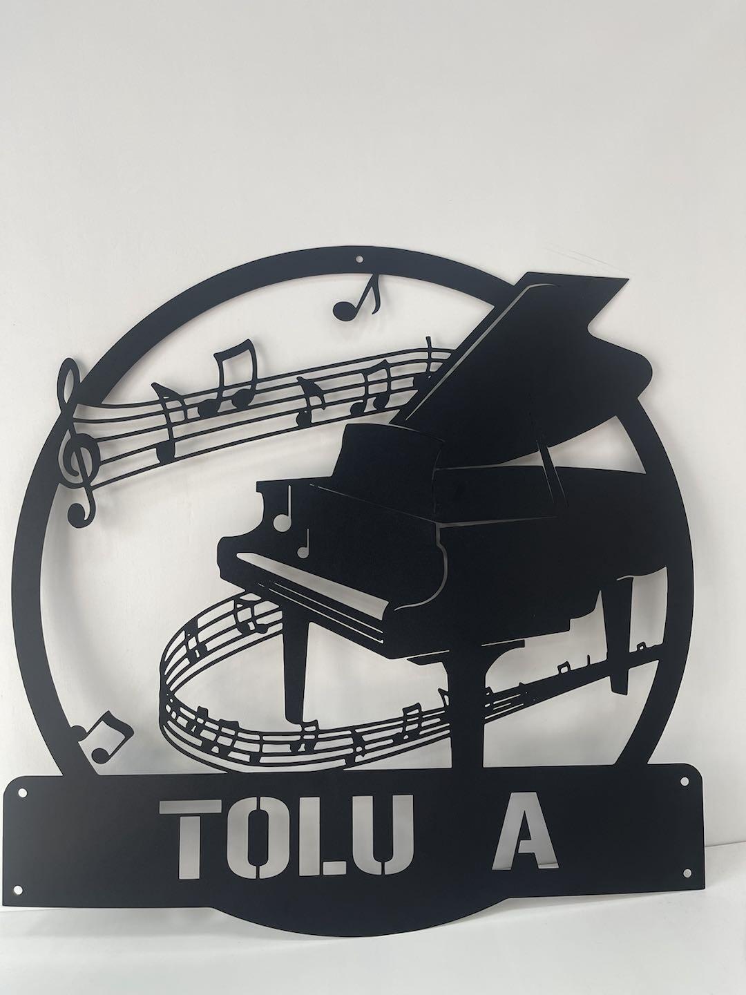 The Custom Piano Monogram Metal Sign is an exquisite Musical Gift designed to captivate any music lover or musician, especially pianists. This personalized metal sign showcases artistic flair and craftsmanship, making it a perfect addition to any space where music is cherished. It not only decorates but also inspires, celebrating the recipient's passion for music with a personal touch that enhances its sentimental value.