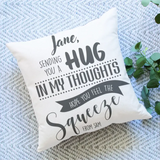 Sending You a Hug Personalized Pillow is the ideal far-away distance Gift, designed to bridge the gap between loved ones. This pillow conveys warmth and affection with its heartfelt message, making it a comforting presence in the home of someone you can't be close to physically. It's a perfect way to send a hug and a smile, ensuring that your loved ones feel cherished and remembered, no matter the distance.