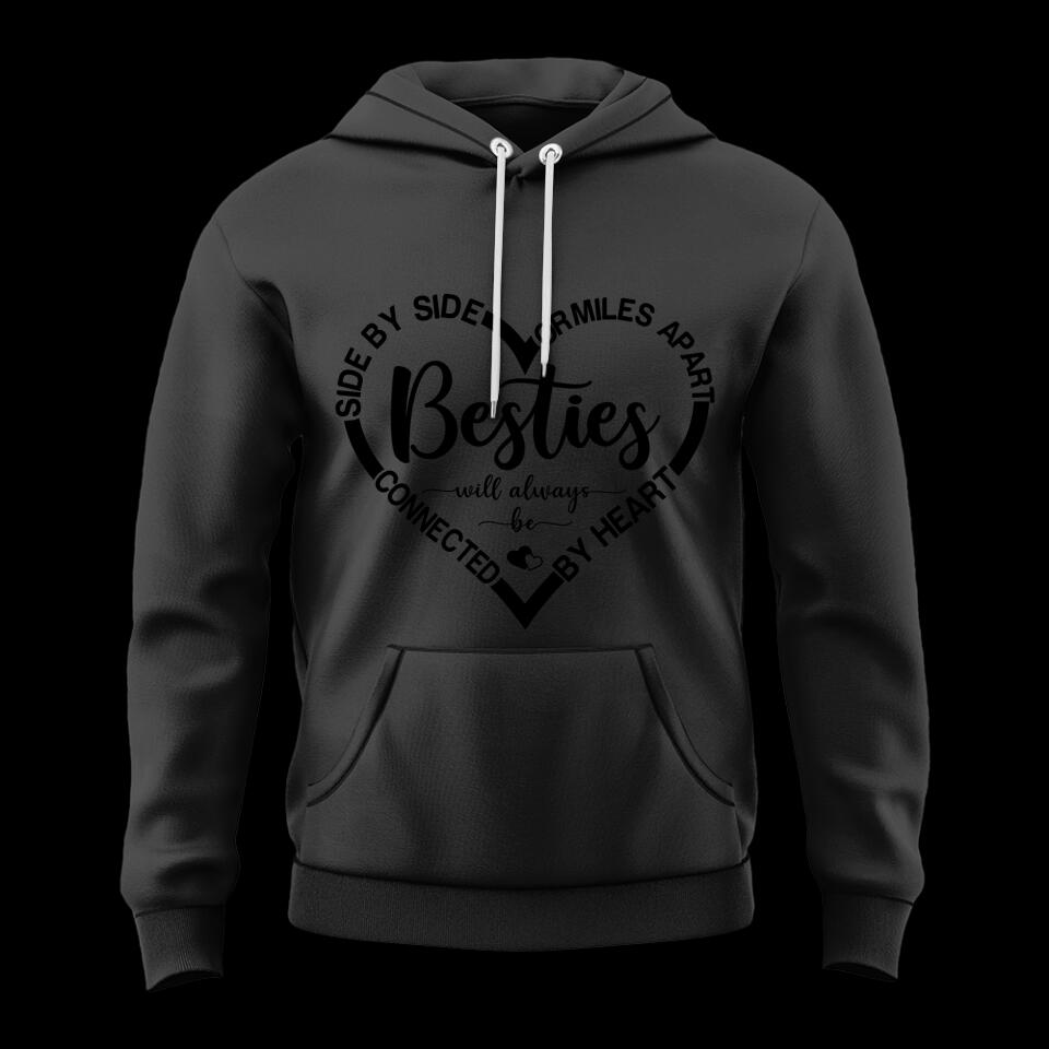 The "Side By Side Or Miles Apart Gift For Bestie Personalized T-shirt" is the ideal gift for besties and best friends, celebrating unbreakable bonds despite distance. This heartwarming T-shirt symbolizes the enduring connection between close friends, making it a perfect choice for birthdays, farewells, or just because. Crafted with care, it’s a meaningful way to show appreciation and keep cherished memories alive, no matter where life takes them.
