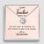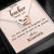 The "Teacher Thank You, You Will Never Be Forgotten" personalized necklace is a beautiful and thoughtful gift for teachers. It symbolizes the lasting impact a teacher has on their students' lives, making it a perfect gift for showing appreciation. This necklace, featuring a sunflower pendant with golden petals and a cubic zirconia center, can be customized to add a personal touch, ensuring it's a memorable token of gratitude