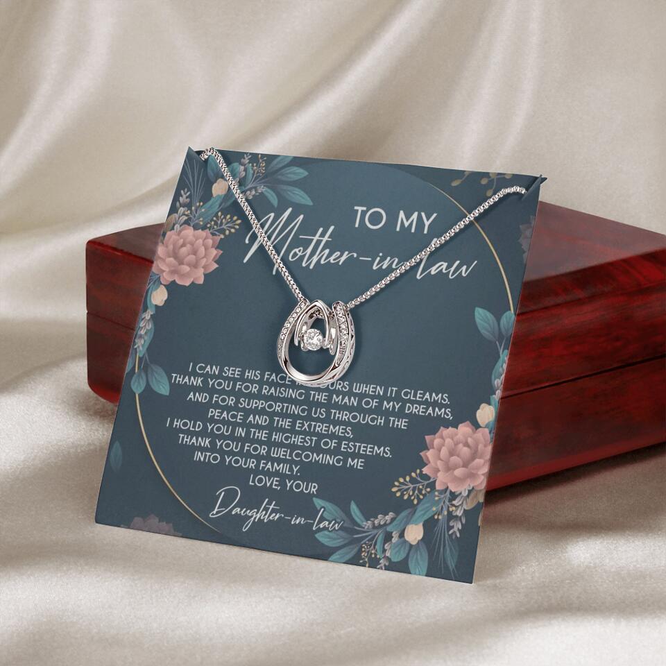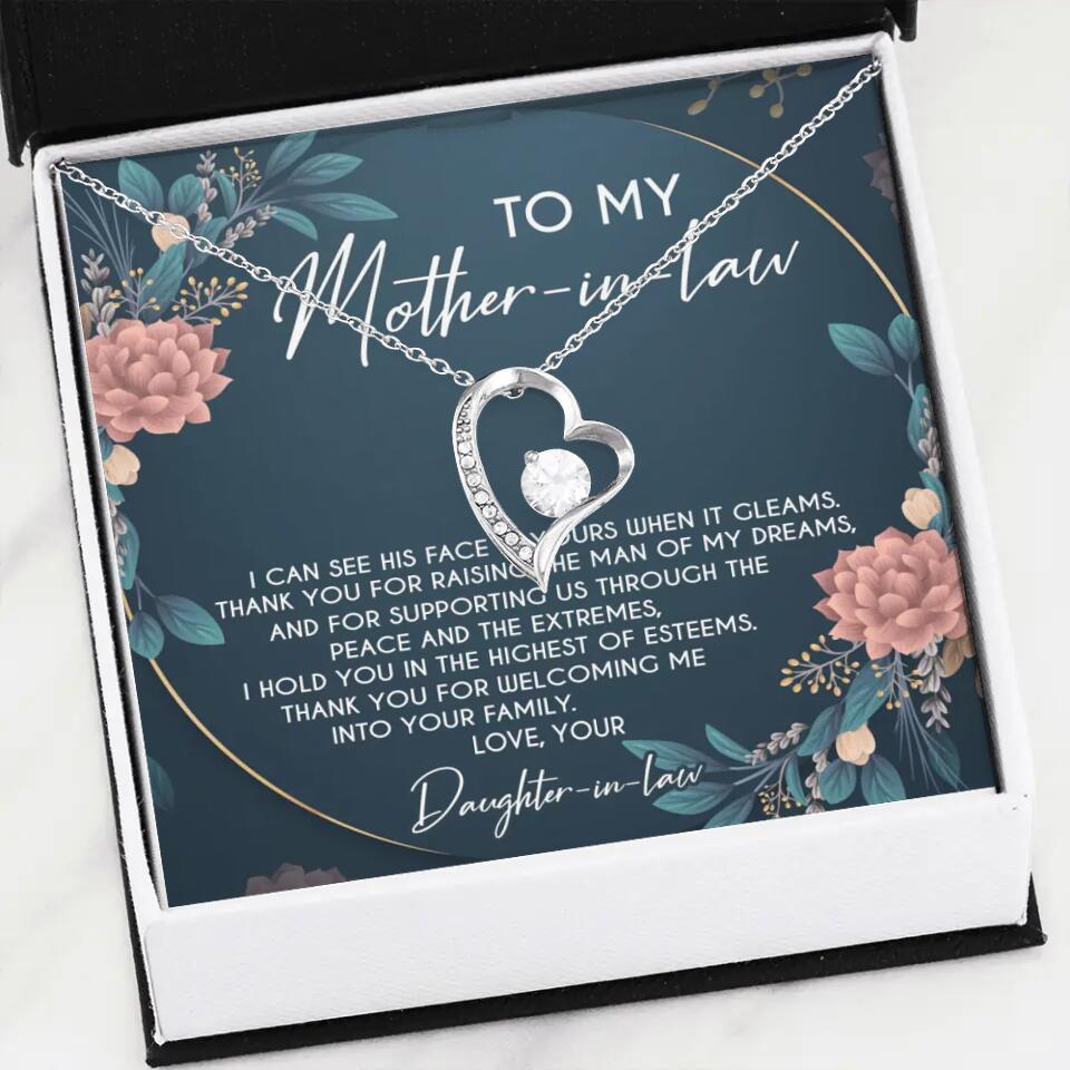 Show your appreciation to your mother-in-law with the heartfelt "Thank You for Raising the Man of My Dream" necklace. This exquisite piece of jewelry is more than just an accessory; it's a token of gratitude and love, expressing thanks for her role in shaping the person you love. Perfectly suited for birthdays, Christmas, Mother's Day, or any day you want to make her feel special, it's an ideal gift for any daughter-in-law looking to strengthen the bond with her mother-in-law.