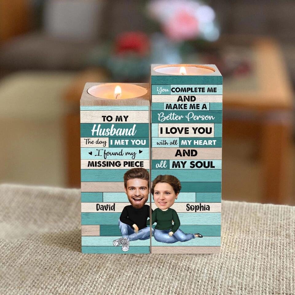 Personalized Valentine Gifts - The Day I Met You I Found My Missing Piece - Personalized Candle Holder - Valentine's Day Gift For Husband