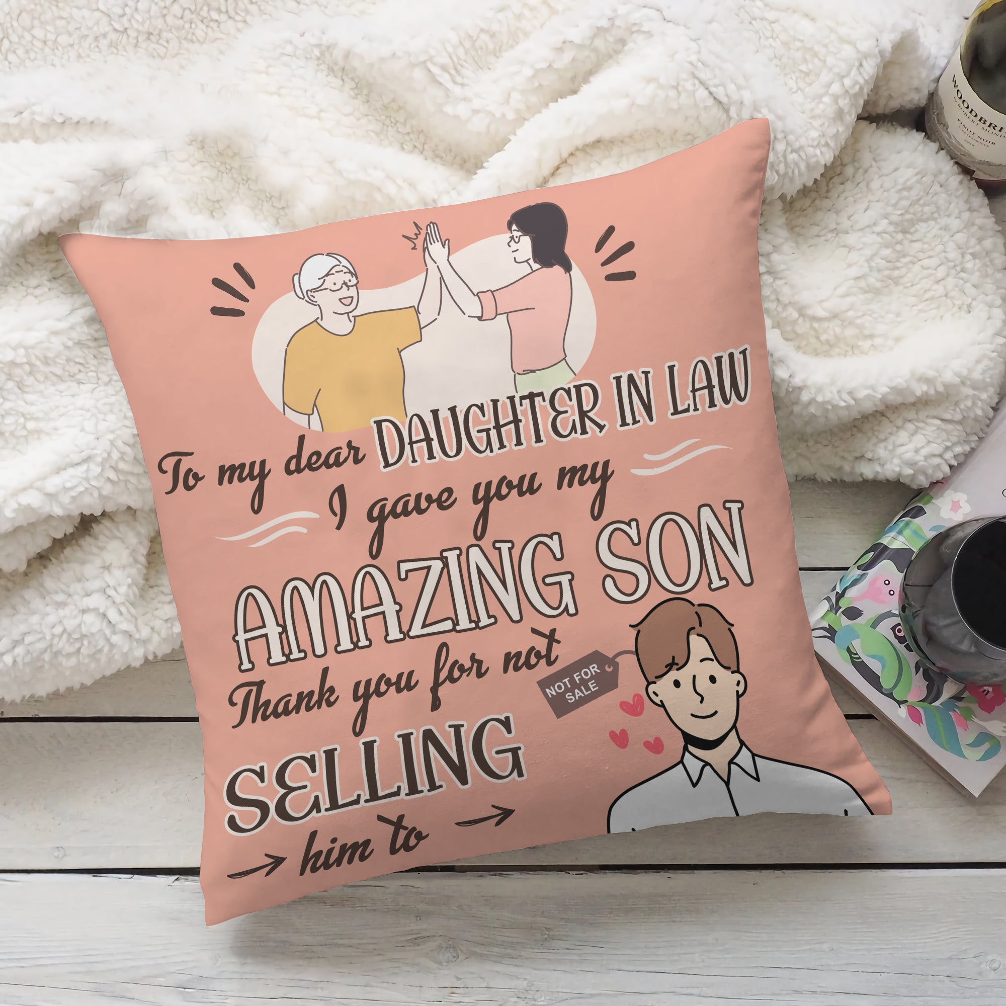 Gift your cherished daughter-in-law something extraordinary and heartwarming with this custom canvas pillow. Celebrating the unique bond between families, this pillow is a constant reminder of your love and appreciation for her. It's not just a pillow but a token of your affection, blending seamlessly into her home decor.