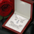 Melt her heart with this ALLURING BEAUTY necklace gift! The petite ribbon shaped pendant is finished with 14K white gold over stainless steel, and is embellished with dainty clear crystals surrounded by a sparkling 7mm round cut Cubic Zirconia.