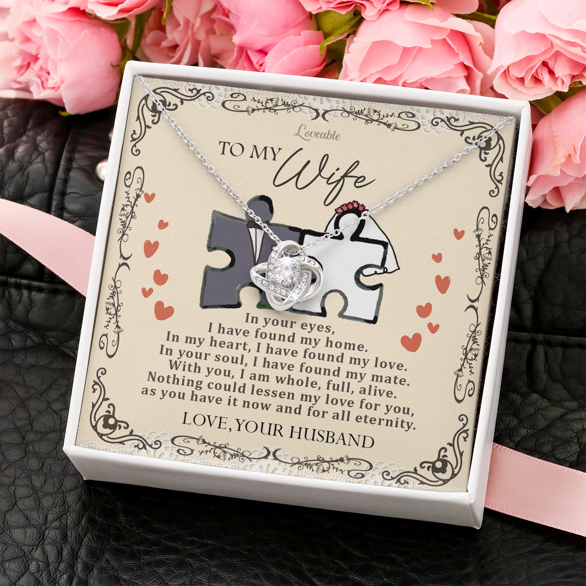 Surprise your wife with a token of eternal affection with our "To My Wife - I Have Found My Home" white gold necklace. This exquisite piece symbolizes the deep bond and unwavering love you share, making it a perfect expression of your commitment and adoration. The elegance of white gold combined with a heartfelt message ensures this necklace is not just jewelry but a precious keepsake that she'll treasure forever. Ideal for anniversaries, birthdays, or just because, this necklace reaffirms your connection and celebrates the beautiful journey you've embarked on together.