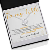 Surprise your wife with a symbol of everlasting love—the exquisite Love Knot Necklace. This stunning piece showcases a woven pendant design, brilliantly accented with shimmering cubic zirconia, capturing the essence of an unbreakable bond between two souls. Perfect for any occasion, this necklace is a heartfelt way to say "You're always and forever my happy ending." Choose the finish that best suits her style, from the radiant glow of white gold to the rich warmth of yellow gold.
