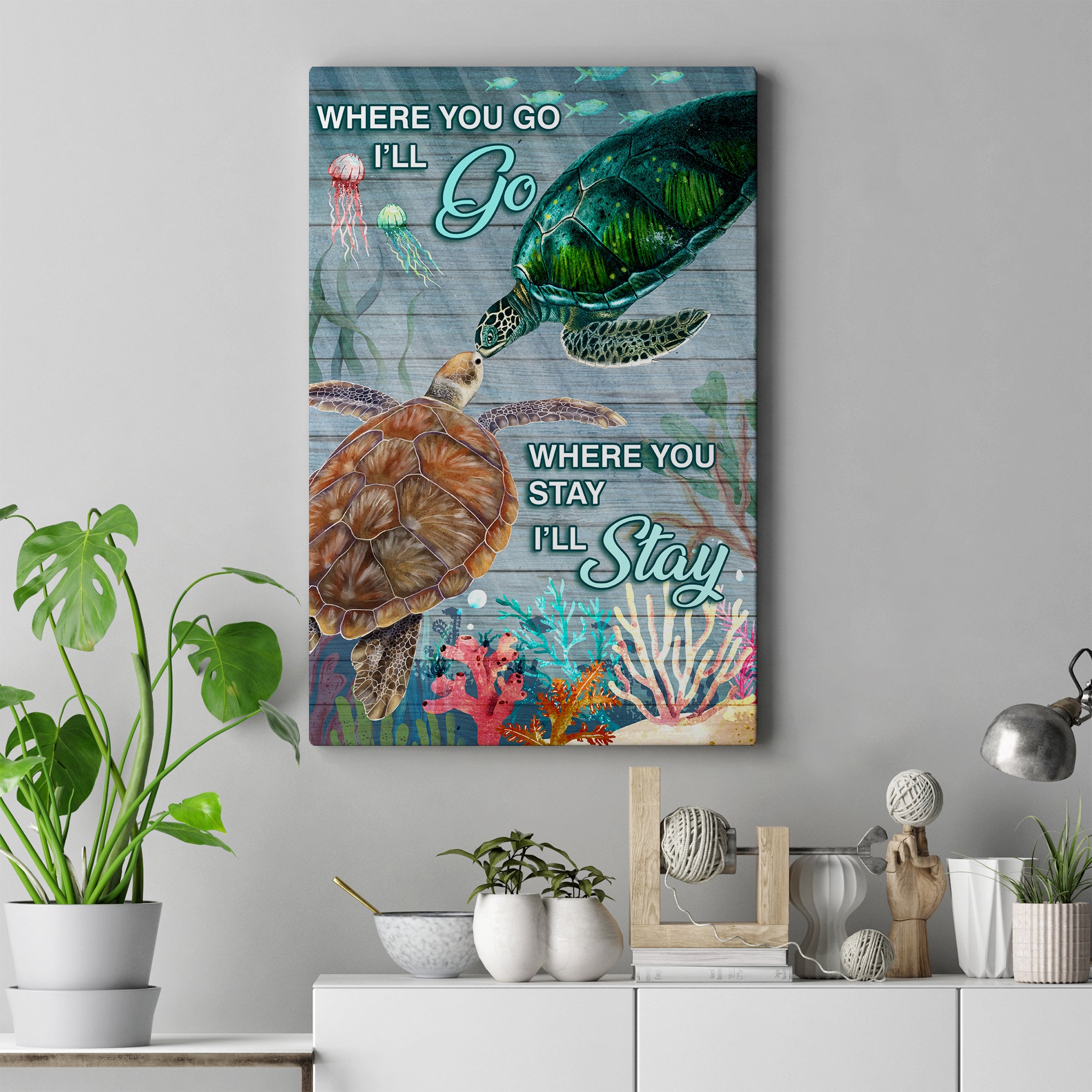 The "Where You Go I'll Go Turtle Couple Canvas Poster Anniversary Gift" is a heartfelt symbol of companionship, perfect for couples celebrating any anniversary. This charming item captures the essence of devotion, making it an ideal gift to express lasting love and commitment. Its timeless design serves as a daily reminder of the journey shared and the paths yet to explore together, making it a treasured keepsake for any couple.